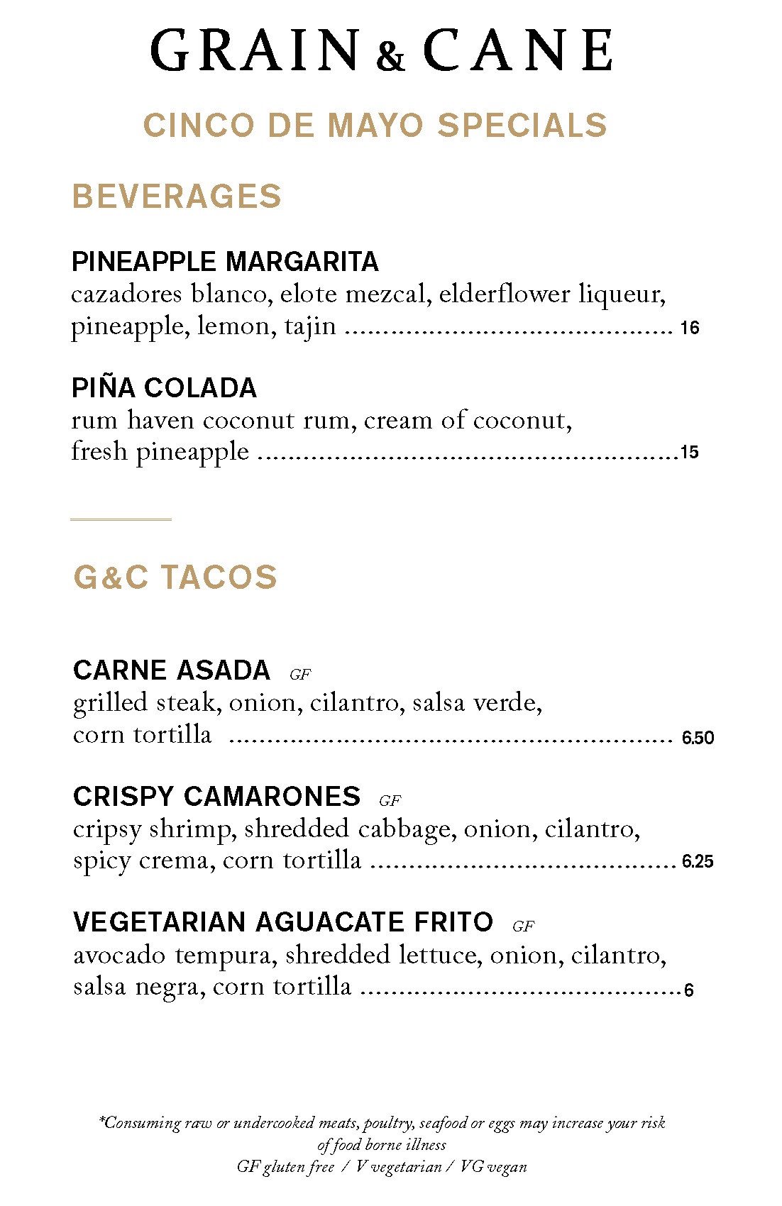3PM-5PM Menu