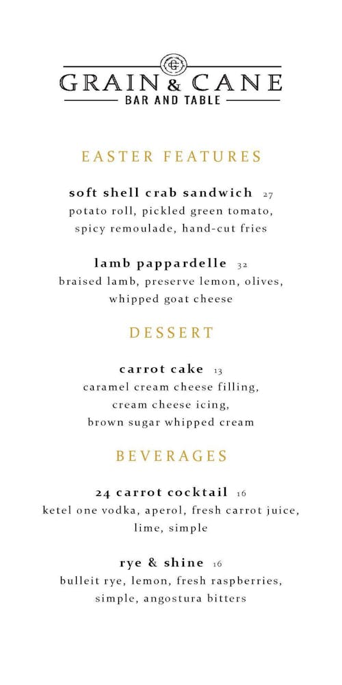 Join us for a delicious Easter celebration with seasonal specials and our full brunch and dinner menus.